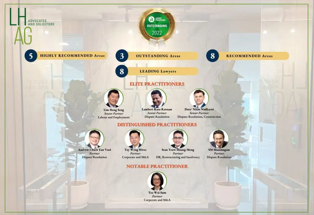 Lee Hishammuddin Allen & Gledhill is delighted that its dispute resolution, construction, and labour and employment practice areas have been ranked “OUTSTANDING” in the newly-released asialaw Profiles 2022. The guide provides law firm recommendations and editorial analysis of key practice areas and industry sectors in Asia.